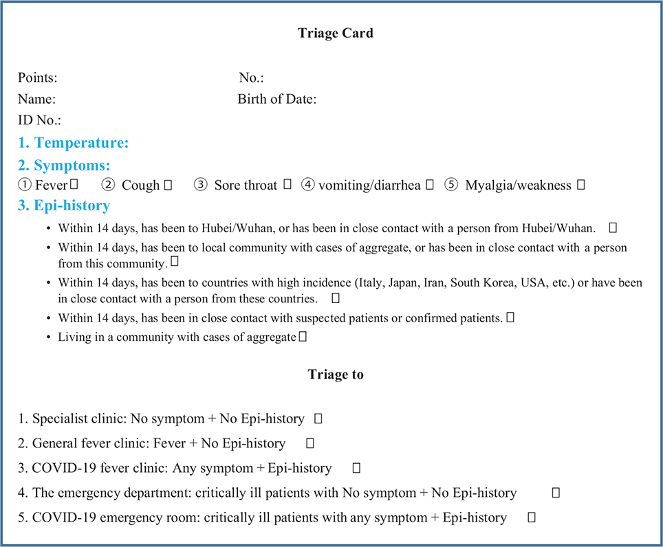 Fig. 2. Coronavirus disease 2019 triage card.