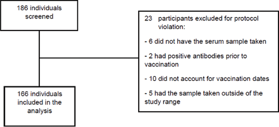 During the first 6 weeks of the study, we included HCWs 3–5 weeks after the second dose of Sputnik V. Thereafter, the Institutional Review Board (IRB) approved an amendment to extend the inclusion criteria to HCW 3 or more weeks after the second vaccine dose. We excluded participants with history of COVID-19 defined by a positive reverse transcriptase polymerase chain reaction (RT-PCR) test, positive IgG before vaccination, or symptoms without evaluation. All participants provided signed informed consent to be included in the database for participation.
